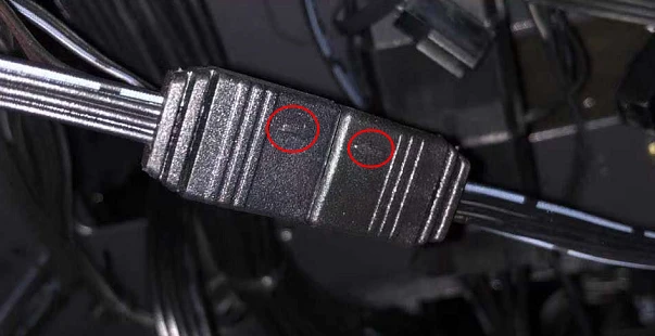 如果是多风扇连接, 也有正负之分, 箭头标记在同一侧